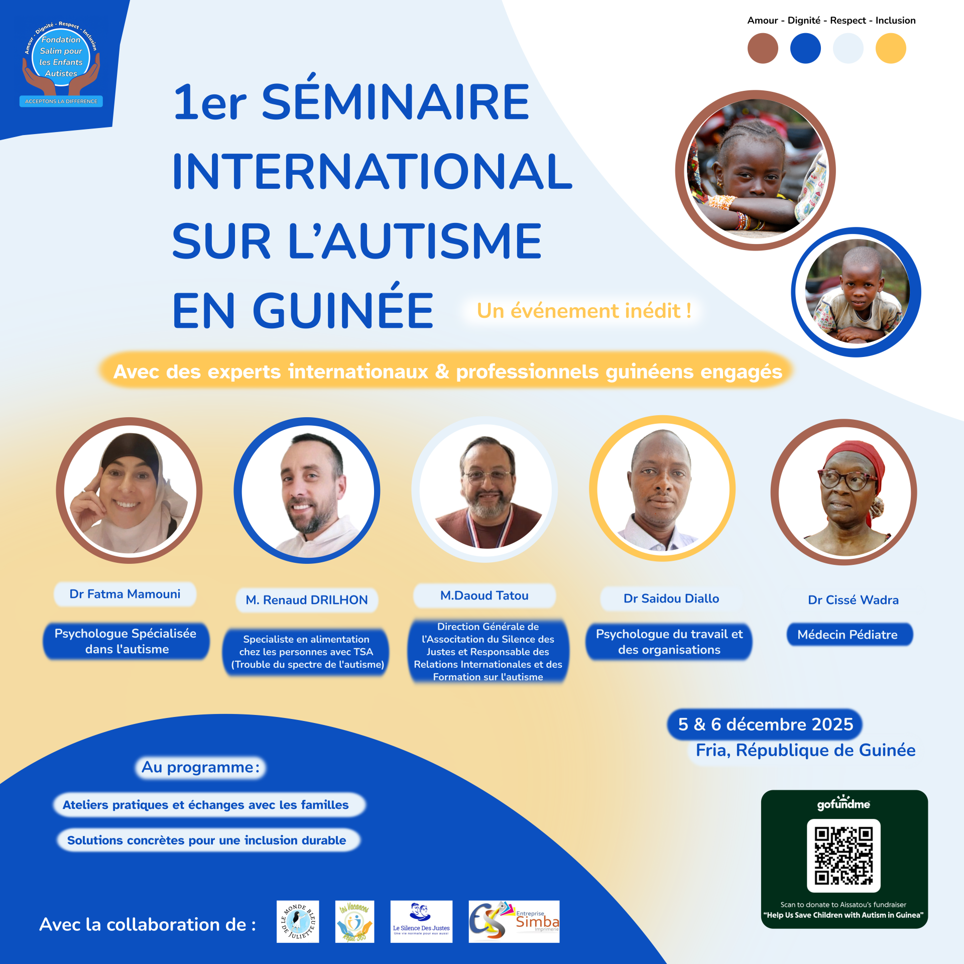 The Fondation Salim pour les enfants Autistes is proud to announce the 1st International Seminar on Autism, to be held on December 5–6, 2025, in Fria, Republic of Guinea.